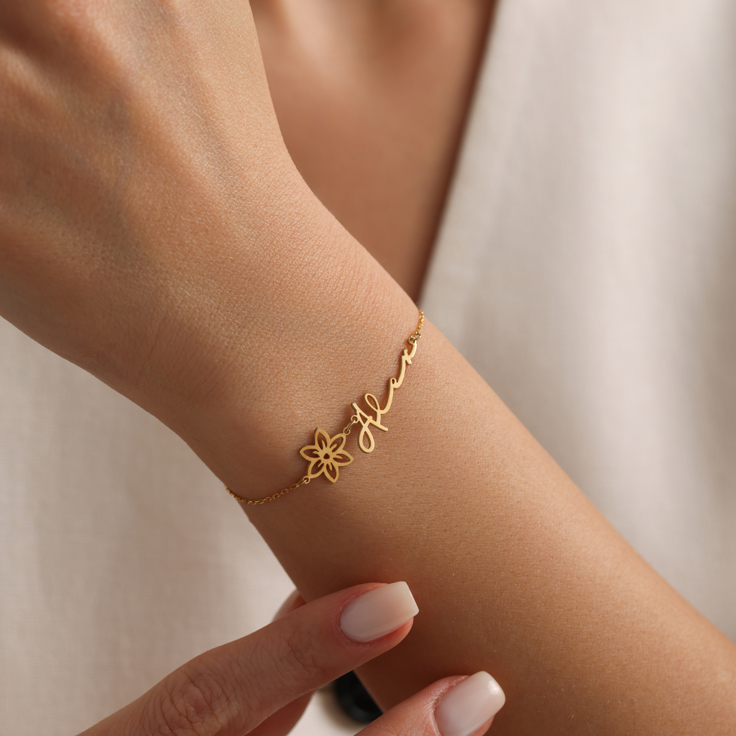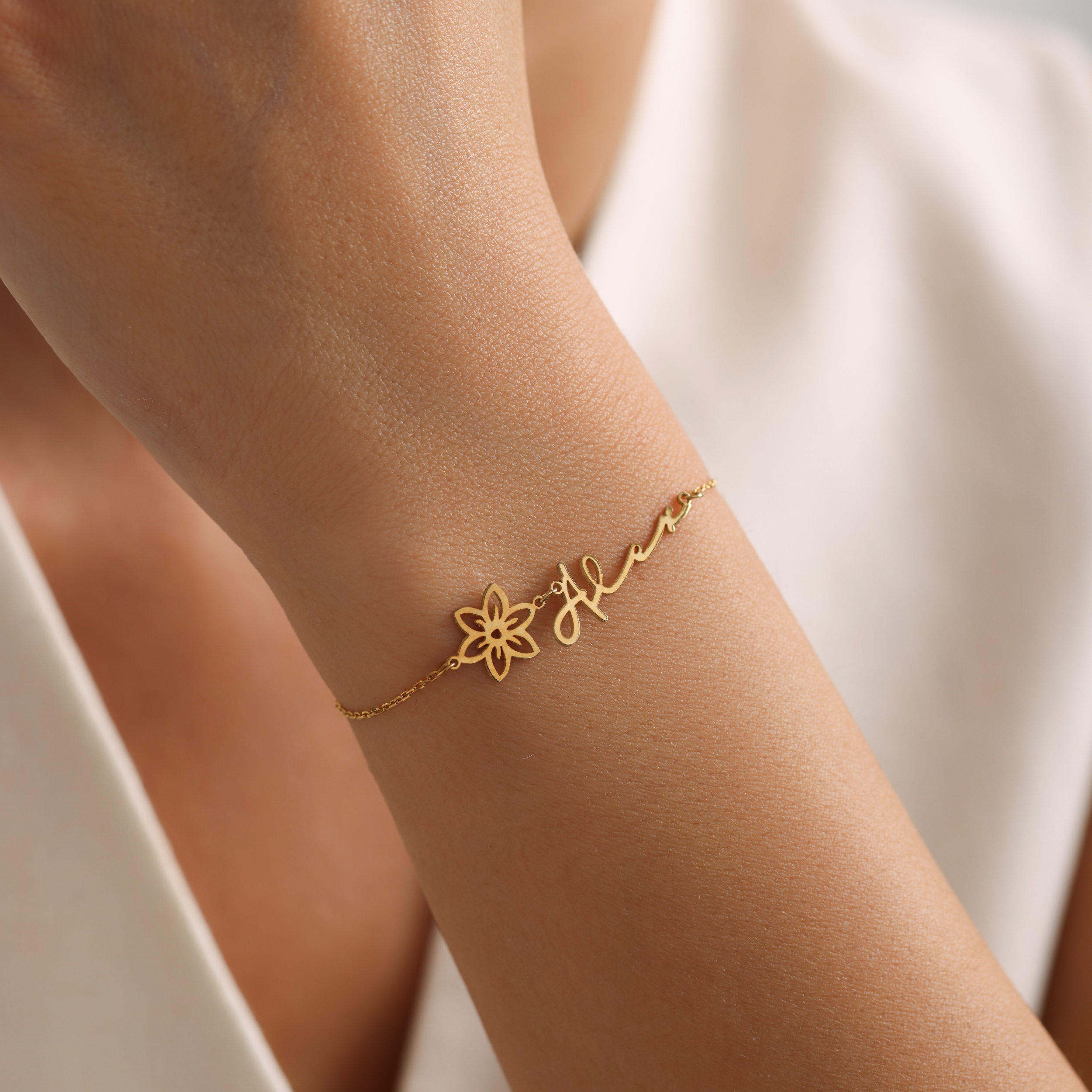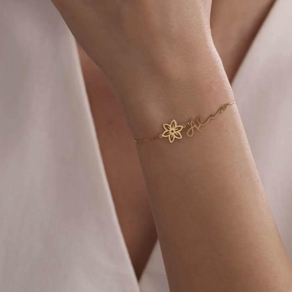 Custom Name Bracelet with Birth Flower