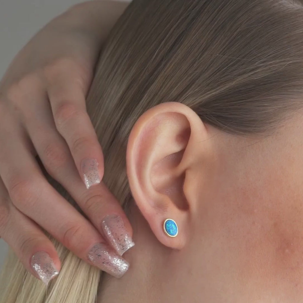 Gold Opal Stud Earrings